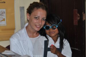 “Cuando gradúas a la persona, puedes percibir un poco su reacción con la gafa de prueba, cuando nota que ve mejor. Esta vez, en las audiometrías, comprobar sus reacciones in situ ha sido lo más emocionante que he vivido en mi carrera profesional. He visto a personas mayores llorar de alegría al oír. He visto a niños de 6 u 8 años escucharse a sí mismos por primera vez. Tan es así, que hemos tenido que ponerles la mano en las cuerdas vocales para enseñarles a diferenciar el sonido de su voz (…) Algunas personas volvían todos los días a darnos las gracias”, Tania Roris.